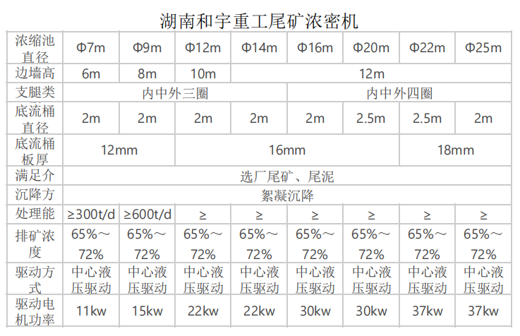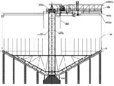 膏体浓密机是利用尾砂浆中固体颗粒的重力沉降来进行连续浓密。其结构具有特殊的给料井、较大的高径比及锥角,因而能产生出高浓度的底流。深锥浓密机主要由浓密机壳体、中心给料井装置、搅拌耙架装置、给料稀释装置、絮凝剂给药装置、自循环装置和自动控制系统等组成。